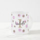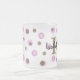 Caneca De Café Vidro Jateado Bolinhas Marrons Rosa Monograma