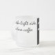 Uma caneca de café engraçada para qualquer um. Personalizável. Você pode mudar ou apagar o texto: Junte-se ao lado claro, temos café no lado branco da caneca e o texto: Junte-se ao lado escuro, temos café preto no lado negro da caneca. Divirta-se e tome café! Esta é a versão invertida do texto.