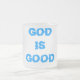 "DEUS É BOM" EM LETRAS DE TEXTO AZUL/VERDE