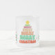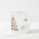 Faça um toque pessoal com um nome personalizado nesta caneca festiva. Apresenta uma design de árvore de Natal divertida com texto colorido de "Feliz Natal". Um copo de fosco para um olhar de na moda. Presente ideal, um presente atencioso e único para amigos e familiares. Nomes editáveis e texto/mensagem de sua escolha.