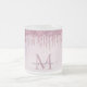 Caneca De Café Vidro Jateado Gotas de Rosa de Monograma Elegante