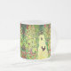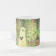Fosco Vidro Café Mug que apresenta o Jardim de Pintura de Óleo de Gustav Klimt com Roosters (1917). Duas galinhas marrons ficam no caminho do jardim. Lindas flores rosa, vermelhas e brancas florescem ao longo do caminho. Um presente de excelente para fãs de Arte Nouveau e de Arte Austríaca.