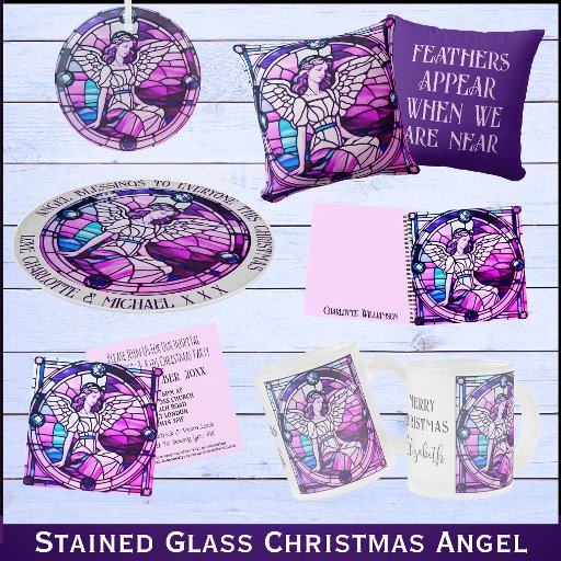 Esta caneca de café roxa e rosa apresenta um lindo anjo de natal feito no estilo de uma janela de vidro manchado. Do lado há espaço para adicionar seu nome. O presente sazonal perfeito para a família, amigos, colegas de trabalho, vizinhos e amigos da igreja/espirituais. Contém IA