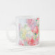Fosco Vidro Café Mug com pintura em flor de Claude Monet. Lindos peões vermelhos, amarelos e brancos em um vaso azul. Um presente de Monet excelente para fãs do impressionismo e da arte francesa.