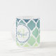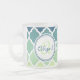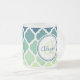 Caneca De Café Vidro Jateado Padrão de letícia marroquina verde-azul monograma