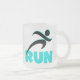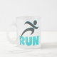 Use T-shirts, canecas, capuzes, tampas de tanques, botões, guardas, e muito mais com um corredor da silhueta preta e um texto azul aqua com a seguinte redação: "RUN"! Estes itens de roupa e presentes são excelente para qualquer um que adora correr, esteja você treinando para o seu primeiro 5.000, apenas goste de correr, ou que corra várias maratonas!