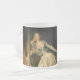 Frosted Glass Coffee Mug featuring Jean-Honoré Fragonard’s oil-on-canvas painting The Stolen Kiss, or Le Baiser à la dérobée (1787). An elegant woman holding a shawl is furtively kissed by a young man. A touching gift for French art collectors and Rococo enthusiasts.