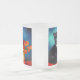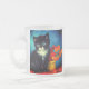 Fosco Vidro Café Mug apresentando um lindo gato de smoking Van Gogh! Esta pequena gatinho se posiciona ao lado de uma cesta de flores laranja sobre uma mesa vermelha. Um presente de excelente para amantes de gatos e colecionadores de arte holandeses!