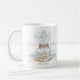 Tema costeiro A caneca de Natal apresenta uma praia de abstrato de aquarela com um boião rústico decorado com corda náutica, conchas marítimas, vidro marinho, coral e lanternas. A linha inferior do texto pode ser personalizada (por exemplo, com um nome ou legenda ou saudação abreviada).