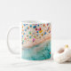 Caneca De Café Vista aérea da praia arenosa com guarda-chuvas col