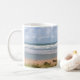Uma caneca mostrando uma bela vista de Burgh Island de Bantham Beach em Devon, Reino Unido. O surf lúgubre entra do Atlântico, passando Burgh Island a caminho de Bantham Beach. Você pode ver o hotel em Burght Island, que vale a pena visitar se você estiver na área e frequentado por Agatha Christie, Noel Coward e outros no 'set' na época. É uma vista sem estrondo mostrando ao largo da costa de Devon. Código da imagem: bnthmbrgh