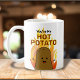 'Você é Minha Batata Quente' é uma caneca engraçada e cômica para aquela pessoa especial na sua vida. Esta caneca divertida apresenta uma adorável batata marrom feliz com braços de palito saindo de cada lado do corpo, pontinhos pretos para os olhos e um grande sorriso feliz. Atrás da batata estão chamas de desenho animado laranja e vermelhas para mostrar o quão quente esta batata está. Acima dele estão as palavras 'Você é Meu' em texto preto e 'Batata Quente' em texto marrom escuro com um contorno amarelo. Ambos são modelos se você quiser alterar qualquer um dos textos para personalizar. Um presente ideal e fofo para aquele que você ama.