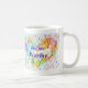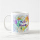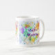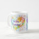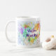A mensagem da xícara de café anota, "Você É Digno." A pintura aquarela apresenta corações sobrepostos em um arco-íris de cores. As imagens do coração são desenhadas e pintadas em aquarela. Um solteiro de grande coração define a fronteira entre o desenho e a pintura de imagens cardíacas. A arte é uma homenagem à comunidade do amor e da amizade em nossas vidas enquanto se sobrepõe ao mundo. Esta caneca de café serve para presentes de excelente. Trabalho de arte inspiracional de Laurel Latto para DonnaBellas Angels, sem fins lucrativos. A missão sem fins lucrativos é fornecer arte inspiradora para o bem-estar mental. O lema é "Medicina cura o corpo, arte cura a alma". Saiba mais online em DonnaBellasAngels.org.