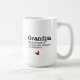 Diversão Definindo Vovô Coffee Mug! 15 onças: 3,4 pol D x 4,5 pol H Dishwasher Safe! Também disponível em 11 onças: 3,2" D x 3,8" H Micro-ondas e máquina de lavar louça segura Forte, com cerâmica Atende aos requisitos do FDA para segurança de comidas e bebidas Impresso a pedido em Reno, NV