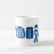Desejos Quentes. Uma caneca projetada com alguns itens de roupa de padrão de estilo argyle em tons azuis. Personalize-o com o seu próprio texto, entre outras opções.
