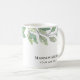 This botanical coffee mug features watercolor greenery and stylish typography. It is easily customizable for your name and job title. Original Watercolor © Michele Davies.