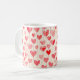 A white coffee mug featuring an all-over watercolor heart pattern with soft, hand-painted textures and a romantic artistic feel. The repeating heart design wraps smoothly around the mug, creating a charming and cohesive look that adds a gentle, warm touch to everyday drinkware.