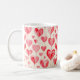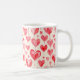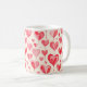 A white coffee mug featuring an all-over watercolor heart pattern with soft, hand-painted textures and a romantic artistic feel. The repeating heart design wraps smoothly around the mug, creating a charming and cohesive look that adds a gentle, warm touch to everyday drinkware.
