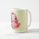 A cute pink cat relaxes in a juicy slice of watermelon, happily sipping coffee. Fancy pastel colors and a fun, fairytale atmosphere make this design a joy to look at. It is perfect for cat lovers and coffee lovers, sure to bring a smile.