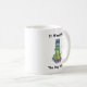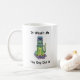 Coffee Mug com uma ilustração mostrando um gato com aspecto rabugento sentado com uma xícara de plástico presa na cabeça como um capacete. É uma tomada humorística, ligeiramente sarcástica sobre gatos, desajeitada, e aqueles momentos "claro que isto aconteceria comigo".