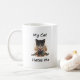 Esta caneca de café apresenta uma ilustração escura e engraçada de um gato zangado, brincando no estereótipo clássico de que os gatos estão distantes, frios ou até abertamente hostis aos seus donos. Ele captura o humor dos gatos como pequenos tiranos que governam a casa e toleram os humanos apenas nos seus próprios termos.