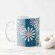 Caneca De Café White chamomile flowers on striped blue background