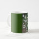 Uma lama clássica de 11oz, com uma bela imagem de marmãs brancas assustadoras, com um fundo verde escuro.