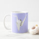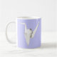 Fotografia de uma grua de papel branco dobrada em cores de fundo personalizáveis. Imagem impressa em ambos os lados da caneca.