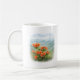 This ceramic mug features a delicate illustration of vibrant wild azaleas in bloom, set against the soft layers of misty mountains reminiscent of northern Japan. The warm orange petals contrast gently with the cool greens and blues of the distant hills, creating a balanced and serene composition.