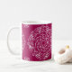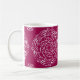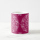 Esta mandala branca senta-se sobre um fundo cor-de-rosa escuro. A cor é muito rica e sofisticada. Parte da coleção Dagrewi Mandala.