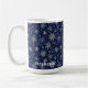 Start your day with a touch of winter wonder using this charming personalized drinkware. Adorned with a beautiful array of snowflakes on a deep blue background, it brings a festive cheer to every sip. Perfect for coffee, tea, or hot cocoa, this durable ceramic item is ideal for anyone who enjoys celebrating the colder season and loves a cozy warm beverage.