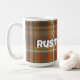 Caneca de café personalizada em xadrez bonito, rústica, marrom, laranja, ouro e cinza. Esta é uma design de xadrez original de Amy Lyn, Green Carbon 2112.