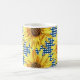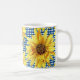 Caneca De Café Xadrez Gingham Azul com Girassóis