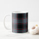 Caneca de café com um teste padrão retro do preto, o azul e o vermelho do grunge da xadrez.
