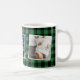 Caneca moderna e na moda personalizável com padrão de xadrez verde com três colagens de fotos e etiqueta monográfica. Personalize adicionando fotos e monograma. Esta caneca personalizada será perfeita como presente para aniversários, Dia de os pais e Natal.