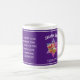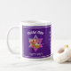 Na moda azul SHANA TOVA Jewish New Year (caneca de café judia de ano novo), mostrando uma estrela de David com uma tigela de maçãs e um prato de mel. Acima está a saudação SHANA TOVA, escrita em tipografia azul, seguida por ROSH HASHANAH no texto hebraico no fundo. A design é repetida no verso, e no meio há uma mensagem e um nome personalizados, que atualmente diz "Que maio do ano seja doce e cheio de bondade de Elohim" mais o nome do marcador. TODO O TEXTO É PERSONALIZÁVEL, para que você possa criar seu próprio texto e ortografia preferidos (por exemplo, L'Shanah Tovah), e adicionar seu nome, com modelos fáceis de usar. Escolha entre uma ampla seleção de cartões de comemoração judaicos personalizáveis e na moda, projetados por Designs bereanos. Versões semelhantes disponíveis em branco e azul.