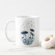 Design de caneca de café com cogumelos e estrelas.