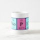 Xenofonte soletrado como Xe No P Ho N (Xênon Nobelium Phosphorus Holmo Nitrogen) numa caneca para o cientista em si.
