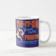 Uma etiqueta publicitária vinda do Vale Yakima de Washington. O rótulo das Frutas "Tie-It-On" com o cão que salta é reposto numa caneca.