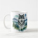 Esta linda caneca de café é mostrada com um impressão de arte de aquarela de lobo amarelo. Personalize este item ou comprar conforme mostrado. Imagem licenciada