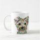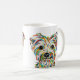 Uma linda e colorida caneca de café do yorkshire terrier que é perfeita para qualquer um que possua ou ame os terriers do yorkshire! Design criou da pintura acrílica original de Chris Ambrose. Mug pode ser PERSONALIZADO se você quiser adicionar texto ou alterar a cor de fundo.