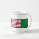 Caneca cristã patriótica mostrando as bandeiras da ZAMBIA e dos EUA, com um verso das escrituras do Salmo 33. Presente ideal para amantes de qualquer uma dessas duas nações.