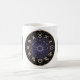 Circular zodiac wheel with all 12 zodiac symbols in gold line art, celestial astrology chart style, dark indigo galaxy background,