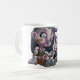 Comece seu dia com um toque de charme Zombie! Essa incrível caneca Zombie apresenta uma vibrante e desenhada à mão de uma garota zombie e seu pássaro zombie. Perfeito para café, chá, ou qualquer poção de sua escolha, esta caneca é imperdível para fãs de arte única e morta.