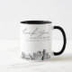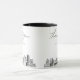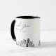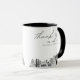 Caneca de café moderna com a silhueta de Sacramento presente de favor com o texto "obrigado". O design mostra um rascunho deslumbrante com a capacidade de personalizar seus nomes e localização exata. Entre na ferramenta de design da Zazzle para personalizações adicionais.