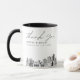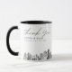 Caneca de café moderna com a silhueta de Sacramento com o texto "obrigado". O design apresenta um desenho impressionante com a capacidade de personalizar seus nomes e local exato. Entre no ferramenta de design da Zazzle para personalizações adicionais.