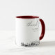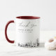 Caneca de café moderna com a linha do horizonte de Mesa, presente de casamento com a inscrição "obrigado". O design apresenta um esboço impressionante com a capacidade de personalizar seus nomes e localização exata. Entre no ferramenta de design da Zazzle para personalizações adicionais.