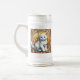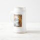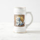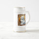 Caneca de cerveja de cerveja com um gato no estilo de Alphonse Mucha! Este gatinho branco fofo parece adorável para o espectador. Flores decoram a cena. Um presente perfeito para amantes de gatos e colecionadores de Art Nouveau!
