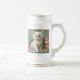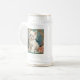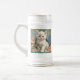 Caneca de cerveja de cerveja com um gato branco no estilo de Alphonse Mucha! Este gatinho liso e de olhos azuis posou com flores cor-de-rosa e cobertores azuis. Um presente fabuloso para amantes de gatos e colecionadores de Art Nouveau!