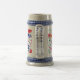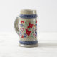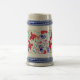 This modern print of birds and flowers in blue, orange and red is ideal for celebrating spring and having a nice cold beer.